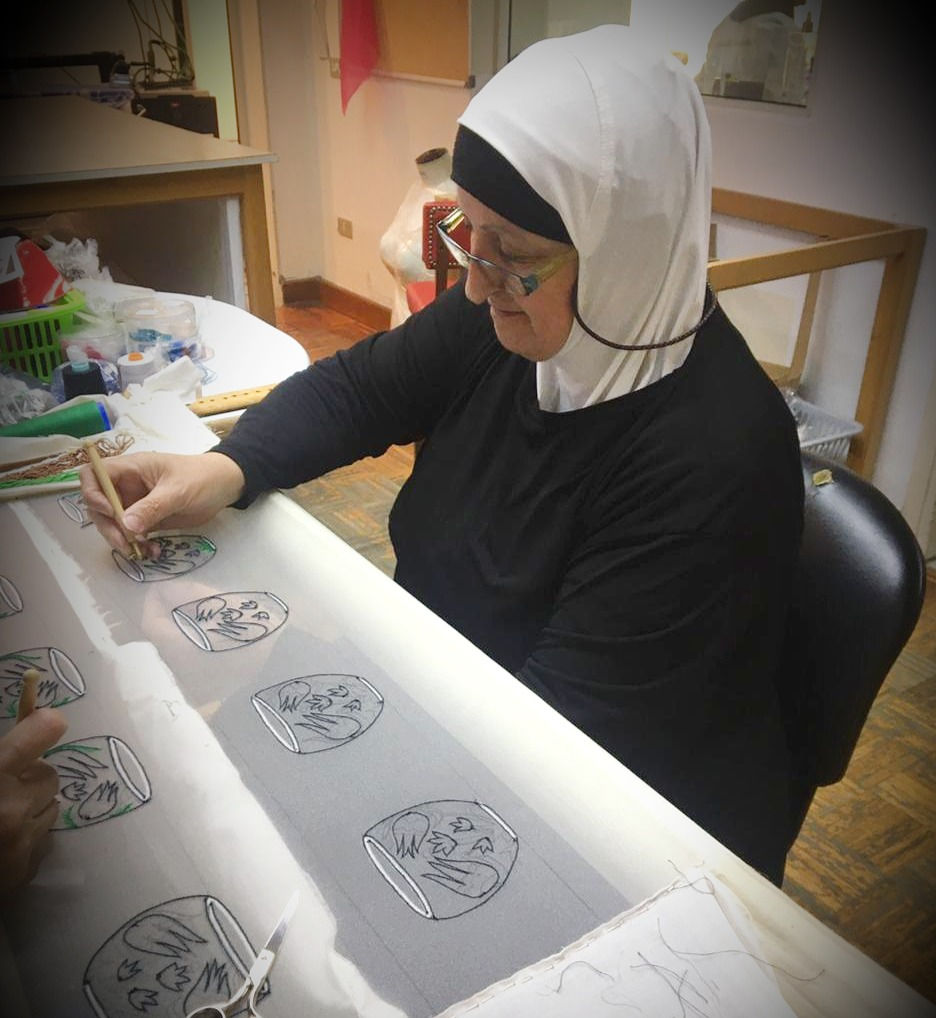 Female artisans of Kashmir stitching the Bona Amore Handbag Collection.